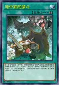 ①:从卡组把1只「地中族」怪兽送去墓地才能发动。原本等级合计直到变成那只「地中族」怪兽的等级以上为止,把这张卡和自己场上的怪兽1只以上解放,把那只「地中族」怪兽表侧守备表示或者里侧守备表示从墓地特殊召唤。这个效果在对方回合也能发动。