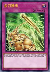 把自己场上存在的1只「元素英雄 金刃侠」作为祭品。对方场上存在的1只怪兽破坏,给与对方基本分那只怪兽的原本攻击力数值的伤害。