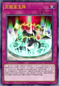 ①:自己的「宝玉兽」怪兽被战斗破坏时,从手卡·卡组以及自己场上的表侧表示的卡之中把「宝玉兽」卡7种类各1张送去墓地才能发动。把1只「究极宝玉神」融合怪兽当作融合召唤从额外卡组特殊召唤。