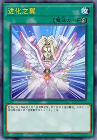 这张卡不能通常召唤。这张卡只能通过「进化之翼」的效果特殊召唤。可以把自己场上表侧表示存在的这张卡作祭品,对方场上攻击表示的怪兽全部破坏,给与对方基本分破坏怪兽的原本的攻击力合计的数值的伤害。这个效果在对方战斗阶段中才能发动。