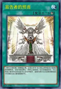 「神光之宣告者」的降临必需。必须从手卡·自己场上把等级合计直到6的怪兽解放。这张卡的效果让「神光之宣告者」仪式召唤成功时,可以把自己墓地存在的这张卡从游戏中除外,选择为那次仪式召唤而解放的1只怪兽从自己墓地回到手卡。