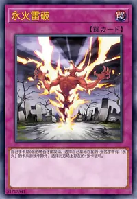 自己手卡是0张的场合才能发动。选择自己墓地存在的1张名字带有「永火」的卡从游戏中除外,选择对方场上存在的1张卡破坏。