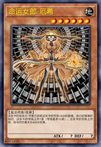 这张卡的攻击力·守备力变成这张卡的等级×200的数值。自己的准备阶段时,这张卡的等级上升1星(等级最多12星)。这张卡用名字带有「命运女郎」的卡的效果表侧攻击表示特殊召唤成功时,把对方场上表侧表示存在的1只怪兽破坏,给与对方基本分破坏怪兽的攻击力数值的伤害。