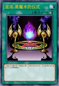 ①:把自己场上1只「黑魔术师」解放才能发动。从自己的手卡·卡组·墓地选1只「混沌之黑魔术师」特殊召唤。