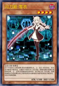 ①:自己的主要怪兽区域没有怪兽存在的场合才能发动。在自己场上把1只「闪刀姬衍生物」(战士族·暗·1星·攻/守0)守备表示特殊召唤。这衍生物不能解放。自己墓地有魔法卡3张以上存在的场合,那衍生物的攻击力·守备力变成1500。