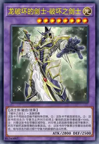 ①:这张卡连接召唤成功的场合才能发动。从卡组把1张「破坏剑」卡送去墓地。那之后,可以从手卡把1只「破坏之剑士」怪兽特殊召唤。