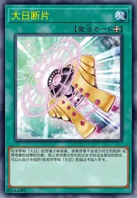 名字带有「大日」的怪兽才能装备。装备怪兽不会成为对方的陷阱·效果怪兽的效果的对象。场上表侧表示存在的这张卡被送去墓地的场合,可以从自己卡组把1张名字带有「大日」的魔法卡加入手卡。
